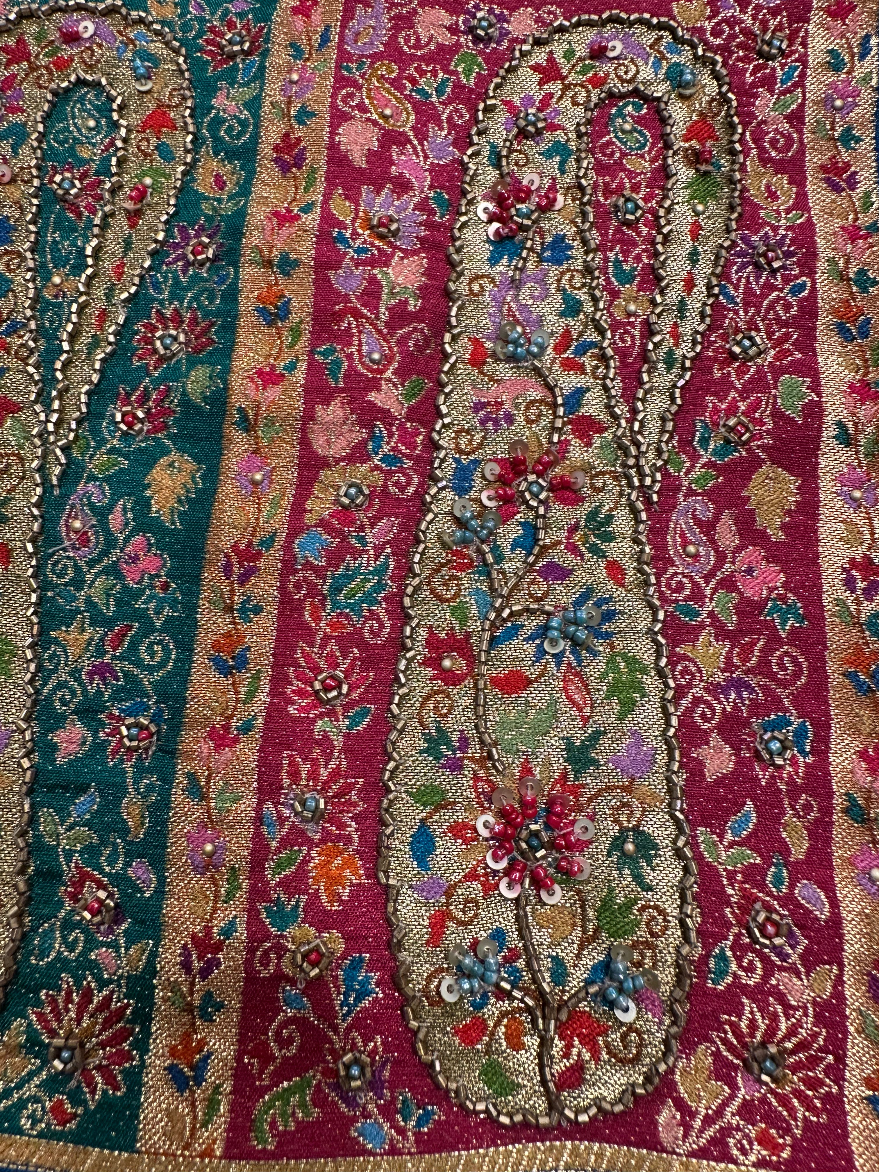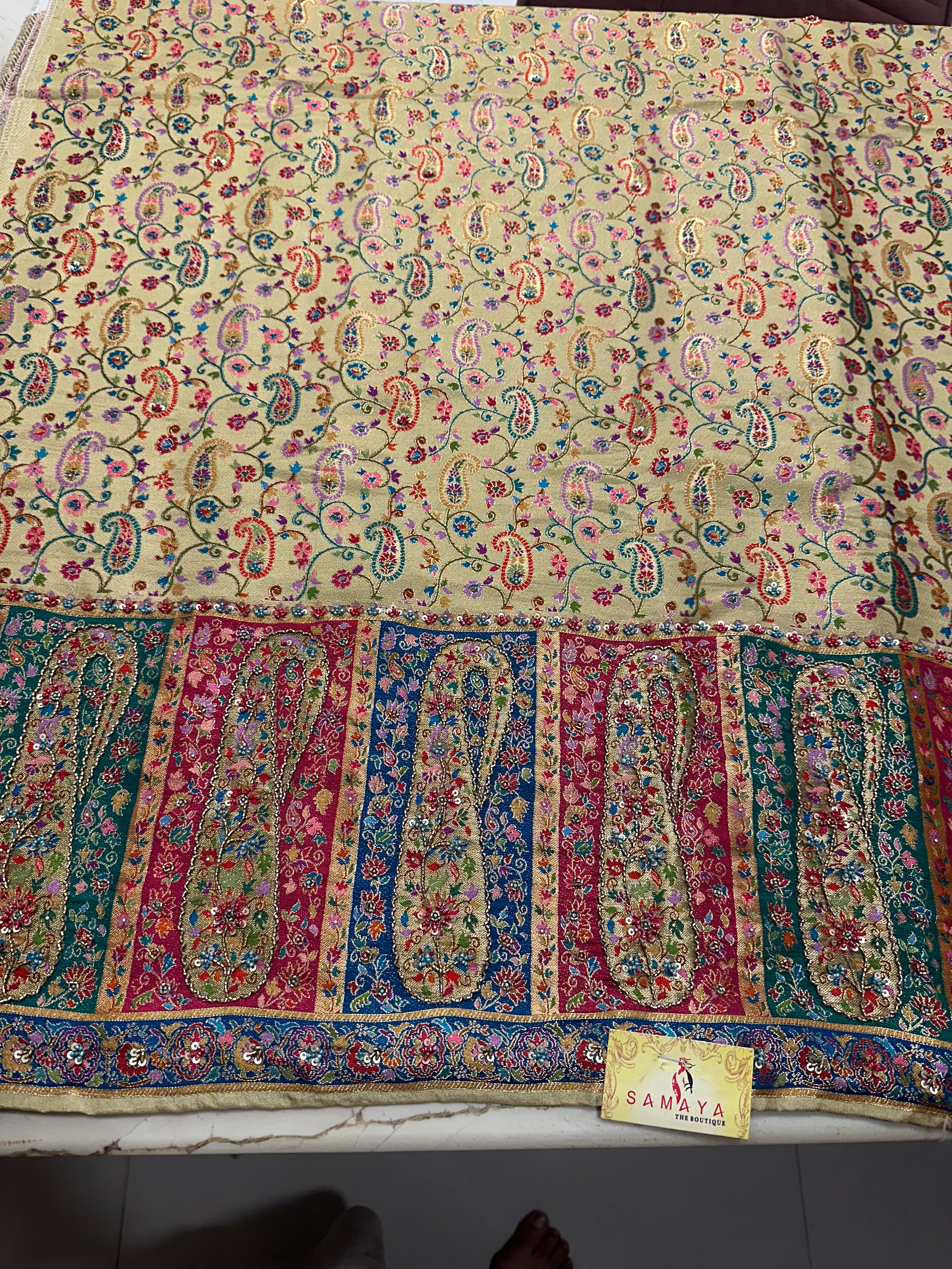 Banarsi Menakari Suit Heighlighted with Hand Work - Color Ghiya Green - Size REG