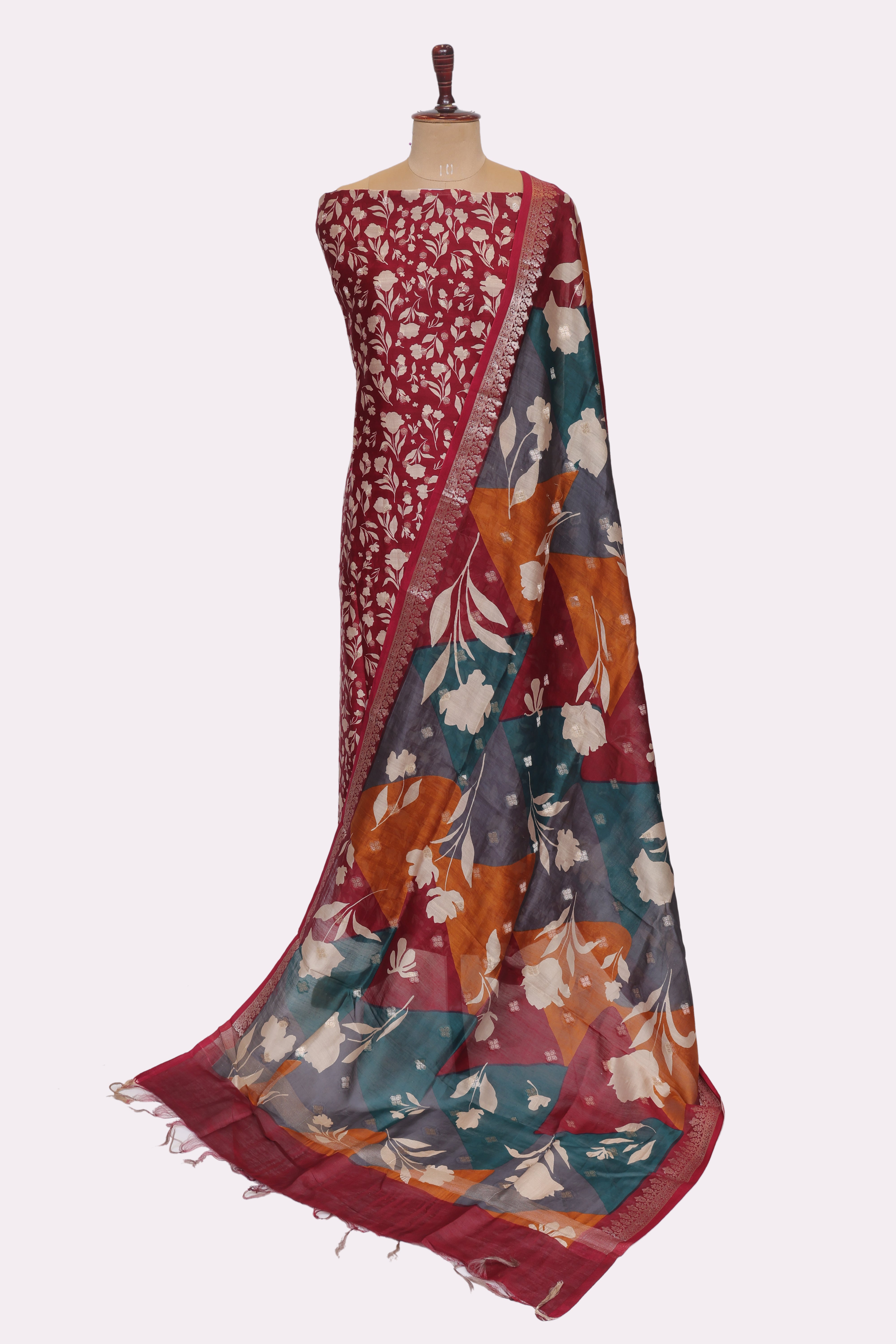 Pure Maheshwari Silk Suit Fabric with Kani Dupatta - Color Maroon - Size REG