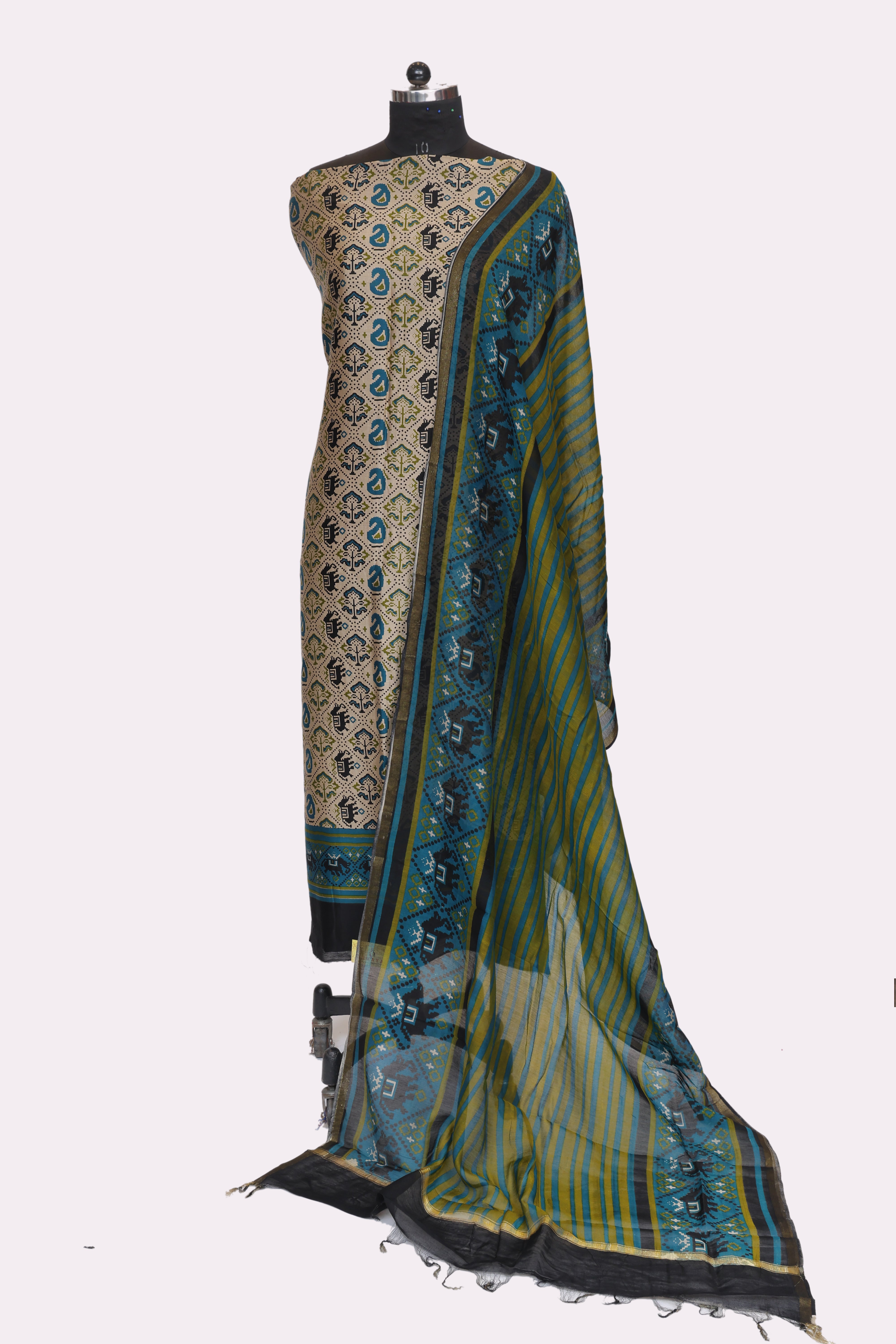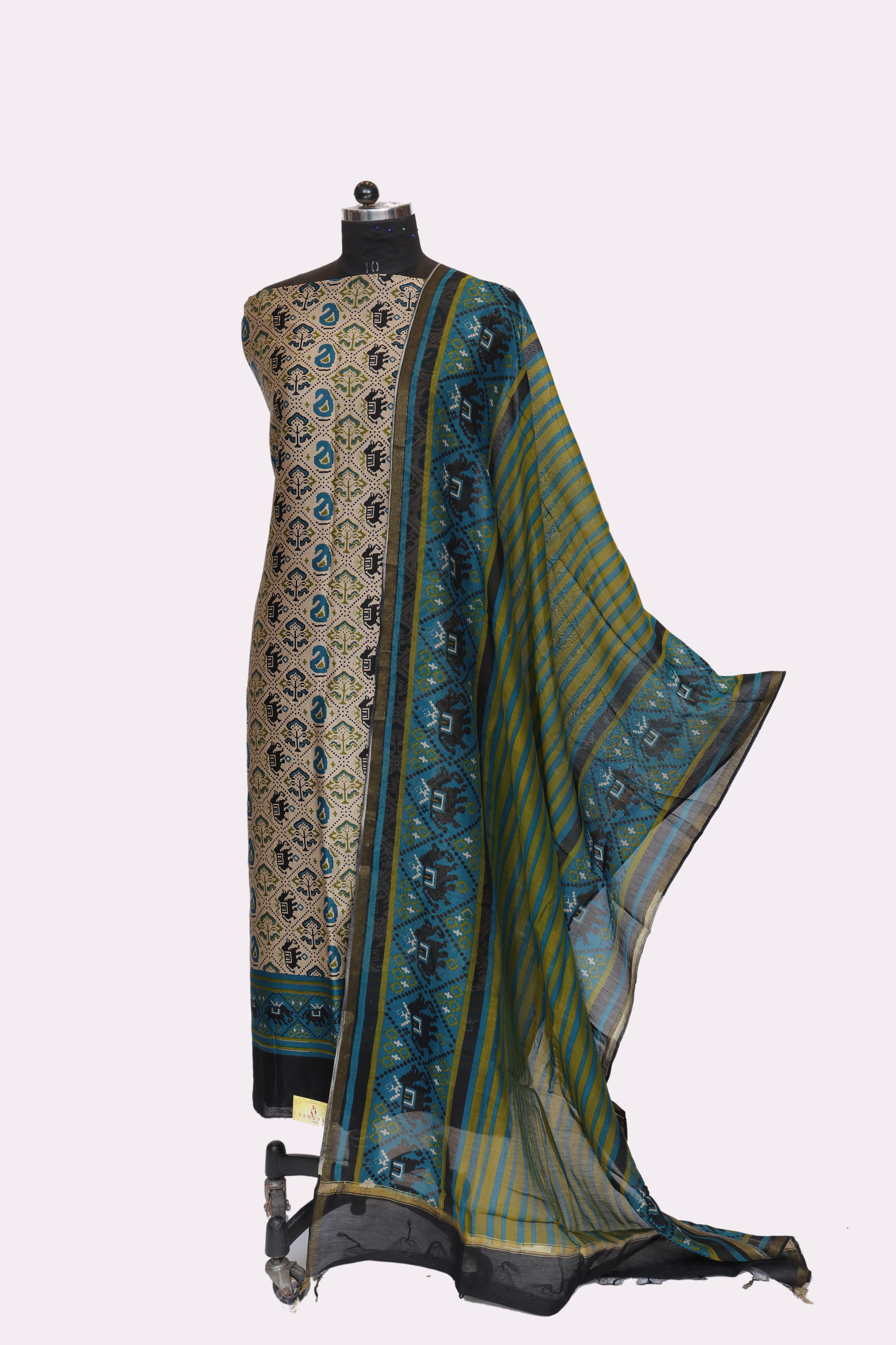 Pure Maheshwari Silk Suit Fabric with Patola Print Shirt and Dupatta - Color Blue - Size REG